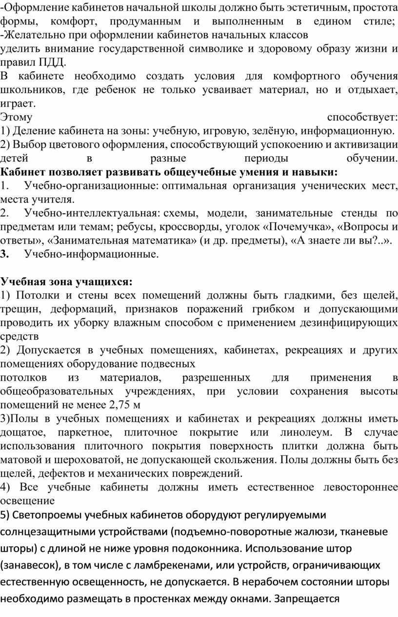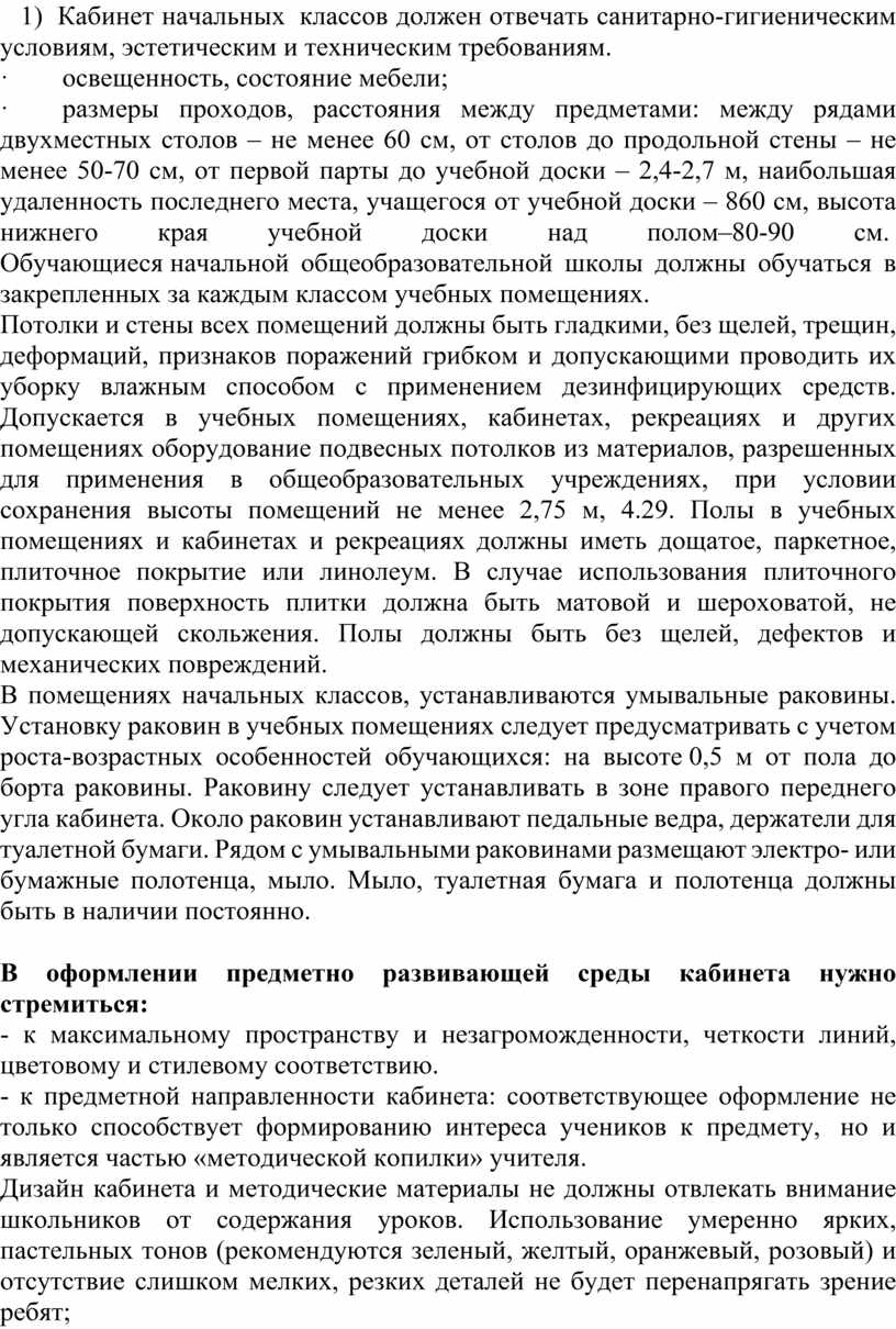 1) Кабинет начальных классов должен отвечать санитарно-гигиеническим условиям, эстетическим и техническим требованиям.