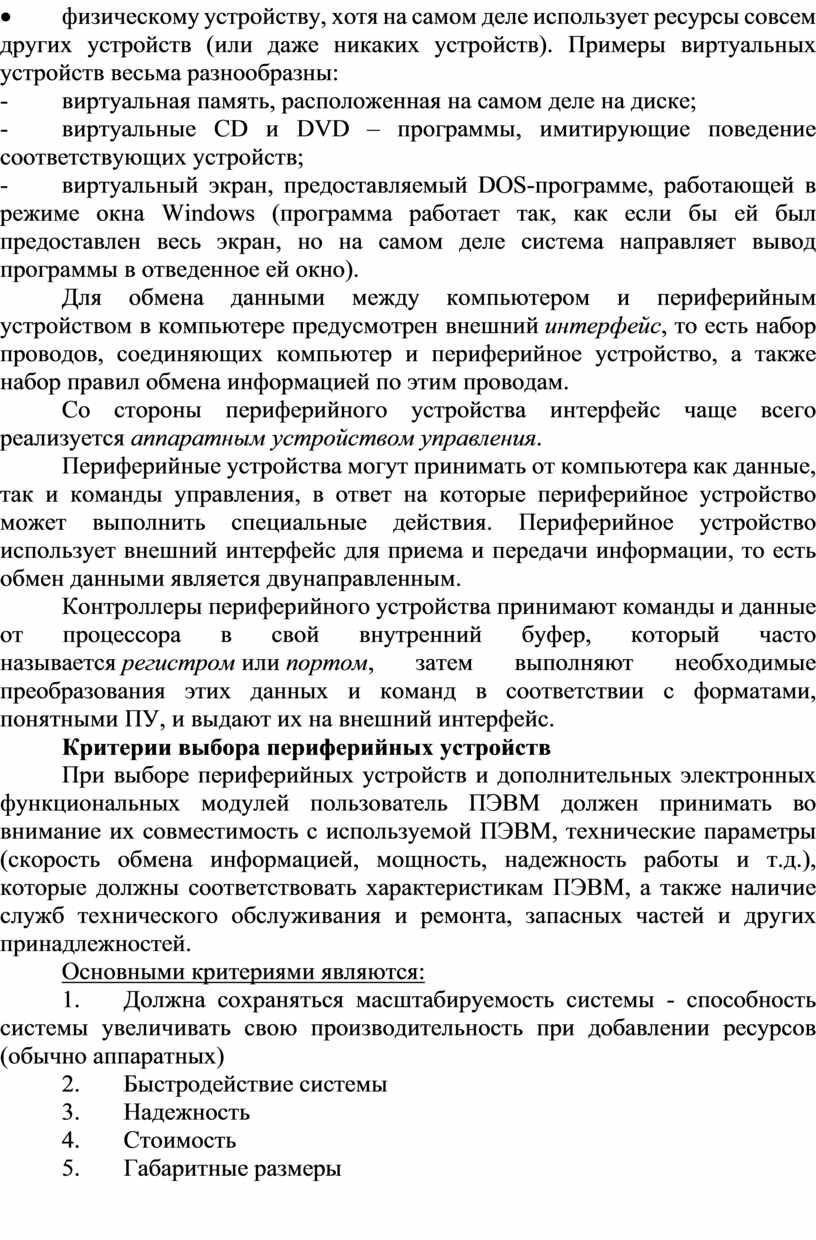 При выборе периферийных устройств и дополнительных электронных функциональных модулей пользователь ПЭВМ должен принимать во внимание их совместимость с используемой ПЭВМ, технические параметры (скорость обмена информацией, мощность, надежность работы и т.д.), которые должны соответствовать характеристикам ПЭВМ, а также наличие служб технического обслуживания и ремонта, запасных частей и других принадлежностей.