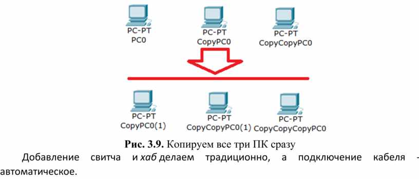 Рис. 3.8. Быстрое создание и настройка трех ПК