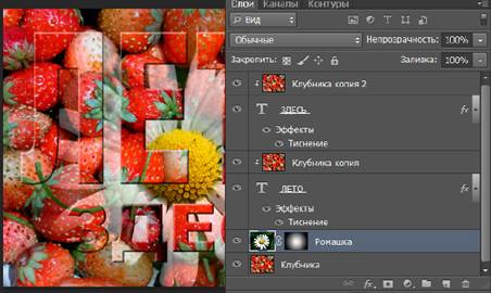 Примените все режимы сортировки слоев к многослойному изображению Клубника.