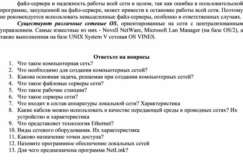Существуют различные сетевые ОS, ориентированные на сети с централизованным управлением. Самые известные из них - Novell NetWare, Microsoft Lan Manager (на базе OS/2), а также выполненная на базе UNIX System V сетевая ОS VINES.