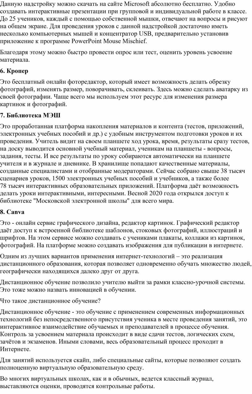 Дистанционное обучение позволило учителю выйти за рамки классно-урочной системы. Это тоже можно назвать инновацией в обучении.