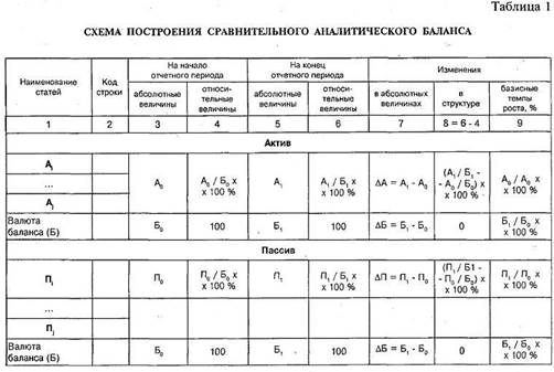 Схему построения сравнительного аналитического баланса представим в табл. 1.