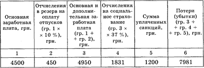 Отчисления органам социального страхования — 37 %. За нарушение графиков поставки продукции уплачено штрафных санкций 1200 грн.