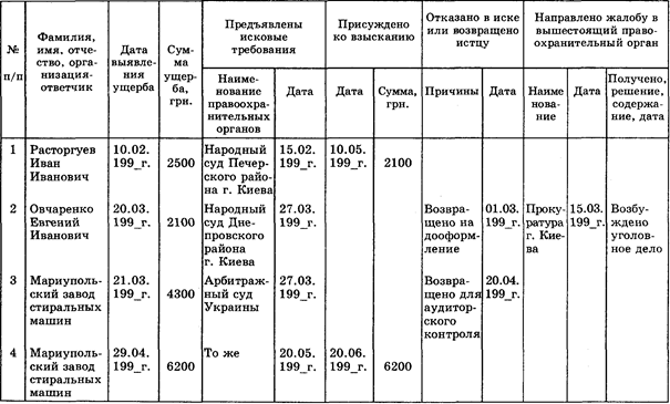 Таблица 17.1. Журнал учета дел по недостачам ценностей, причиненному ущербу в хозяйственных отношениях, переданных в правоохранительные органы