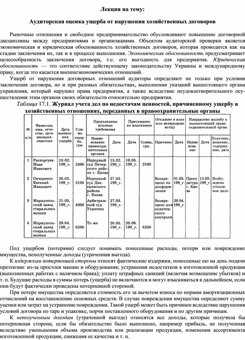 Аудиторская оценка ущерба от нарушения хозяйственных договоров