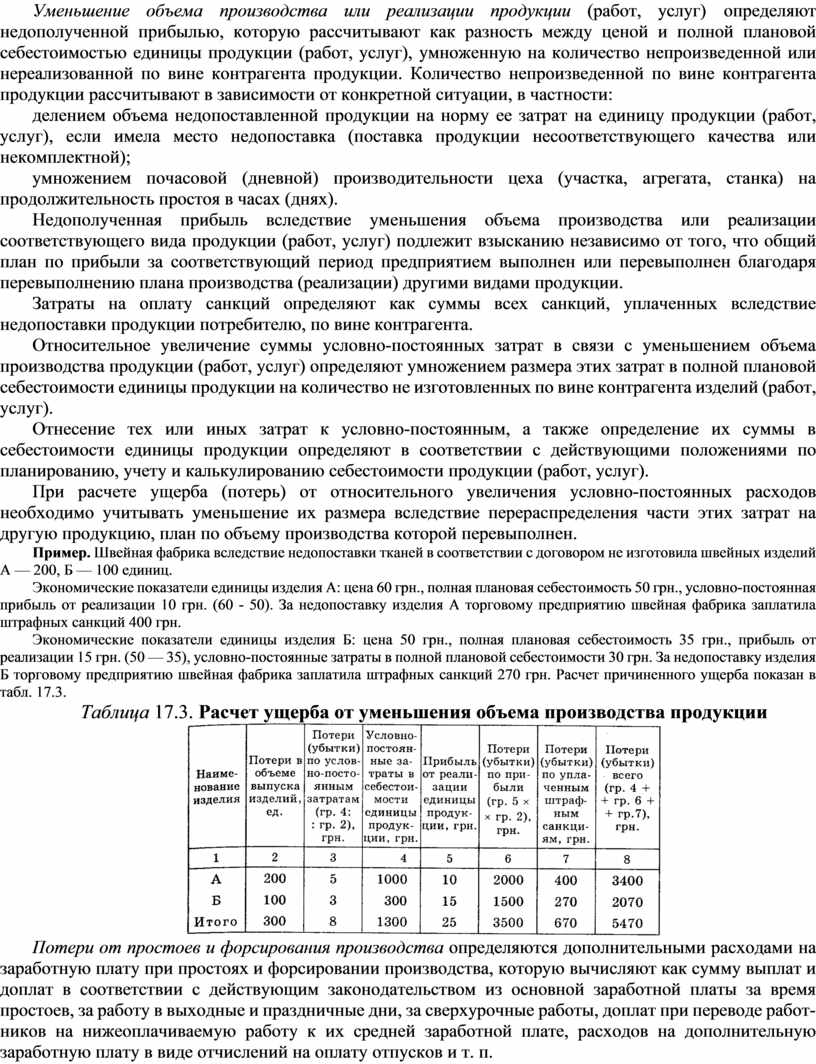 Таблица 17.3. Расчет ущерба от уменьшения объема производства продукции