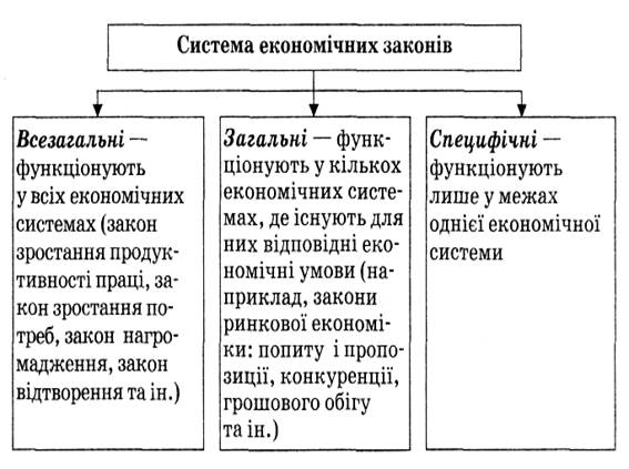 Економічні закони відображають найсуттєвіші, стійкі, такі, що постійно повторюються, причинно-наслідкові взаємозв'язки і взаємозалежності економічних процесів і явищ. Закони виражають сутність економічних відносин.