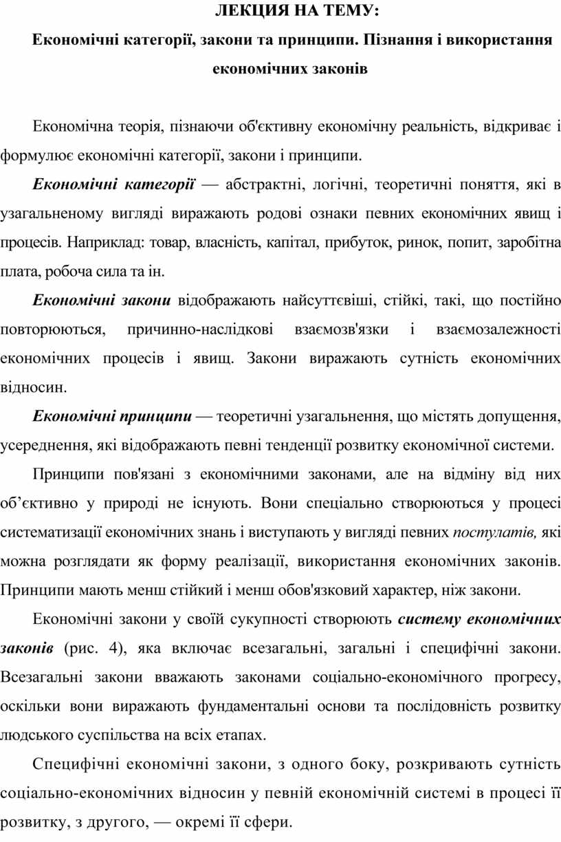 Економічні категорії, закони та принципи. Пізнання і використання економічних законів