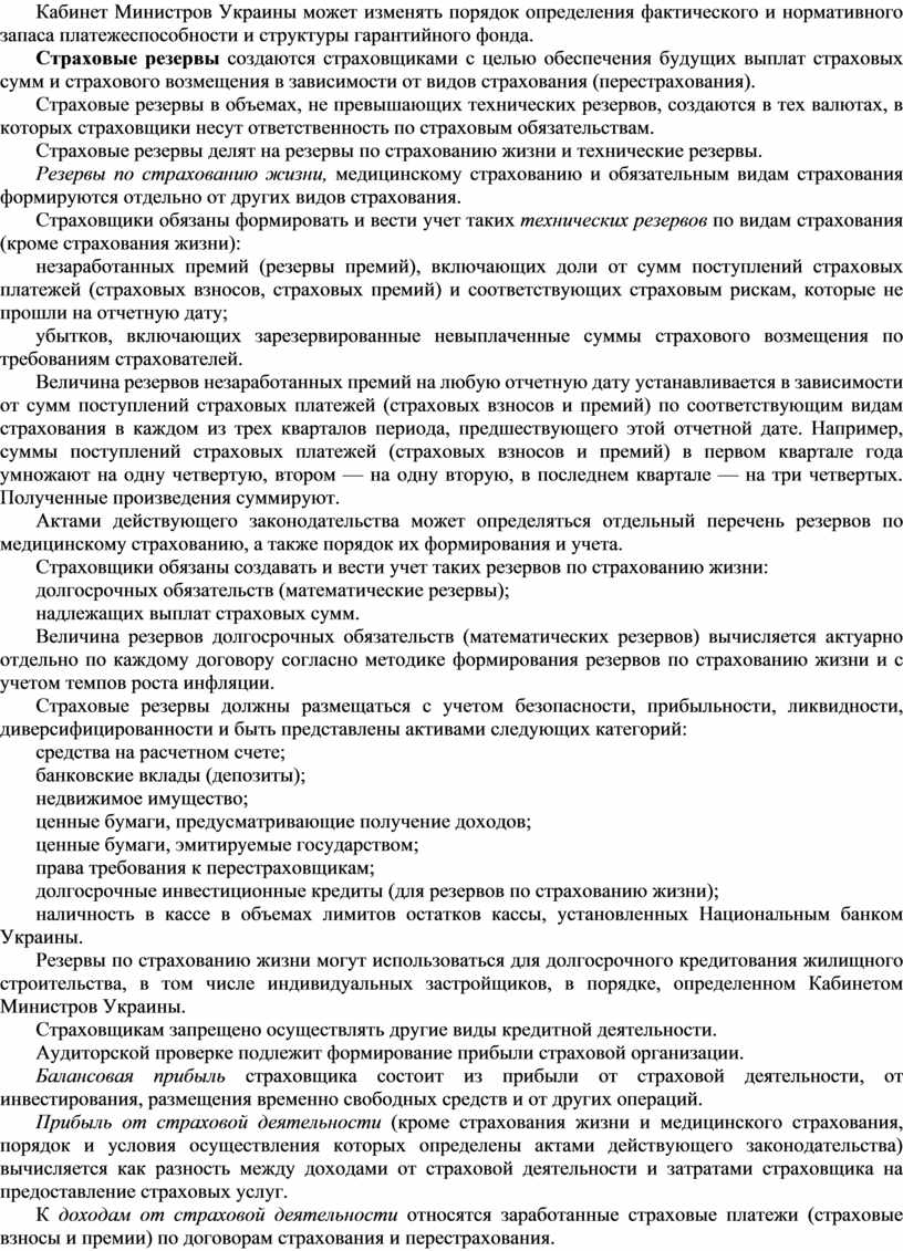 Финансовый контроль и аудит соблюдения страховыми организациями экономических нормативов