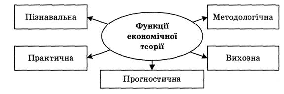 У процесі становлення і розвитку економічної теорії як науки були сформовані і її основні функції (рис. 7): пізнавальна, методологічна, практична, прогностична,