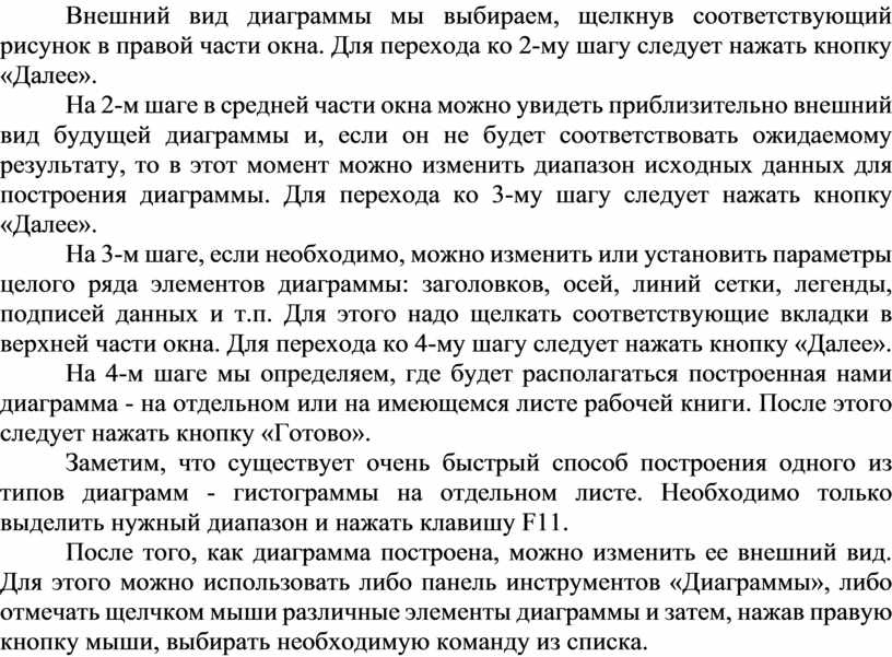 После этого следует нажать кнопку «Мастер диаграмм» на стандартной панели инструментов. Мастер диаграмм работает в 4 шага: