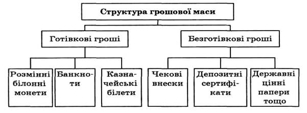 Структура грошової маси відображає структуру і рівень розвитку економіки країни: чим менша частка готівки у загальній грошовій масі, тим ефективнішою та розвинутішою вважається ця національна грошова система. У розвинутих країнах на готівку припадає лише 5—10 % грошової маси, а в Україні поза банками обертається 35 % готівки, яка має позитивну тенденцію до зниження.