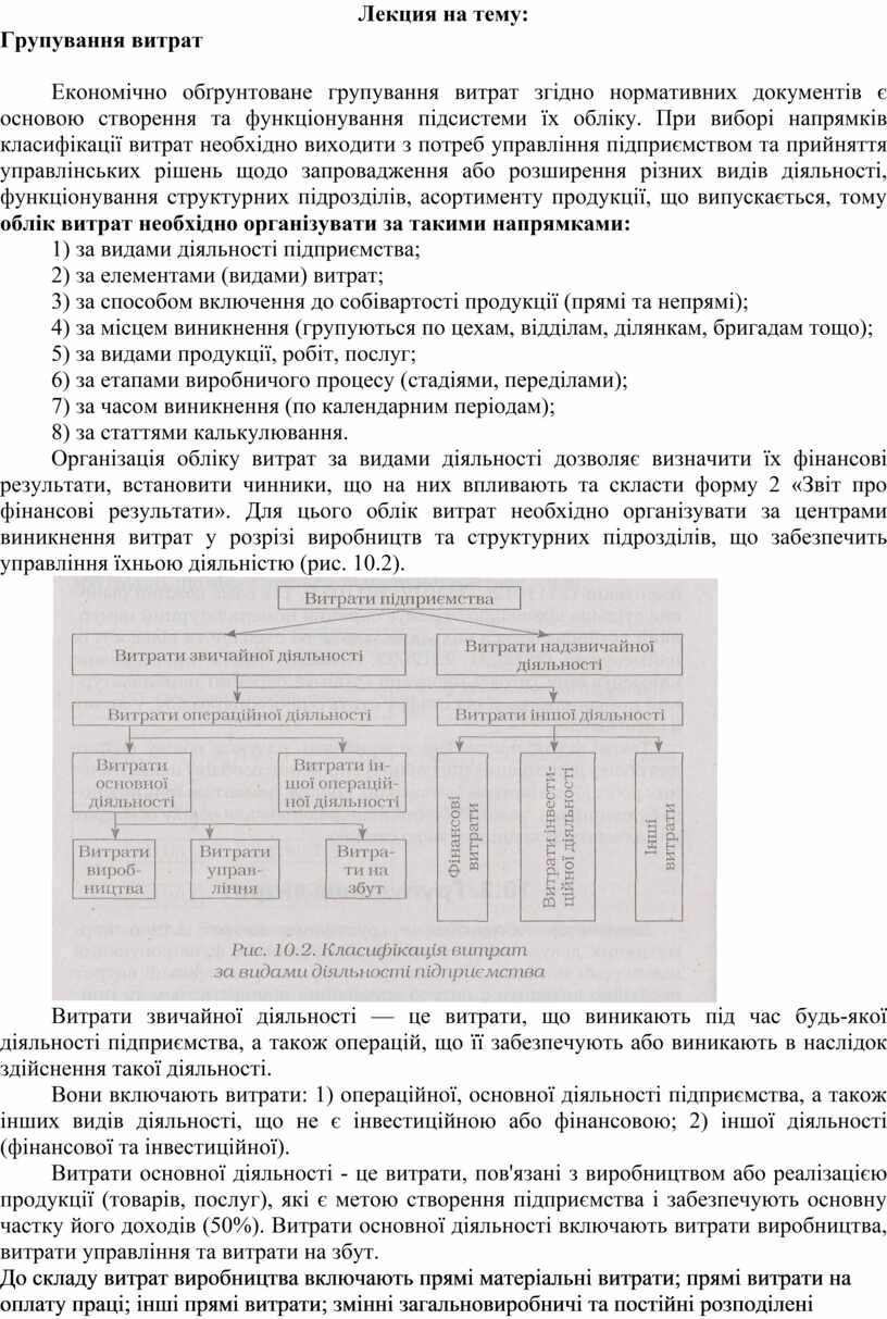Організація обліку витрат за видами діяльності дозволяє визначити їх фінансові результати, встановити чинники, що на них впливають та скласти форму 2 «Звіт про фінансові результати». Для цього облік витрат необхідно організувати за центрами виникнення витрат у розрізі виробництв та структурних підрозділів, що забезпечить управління їхньою діяльністю (рис. 10.2).