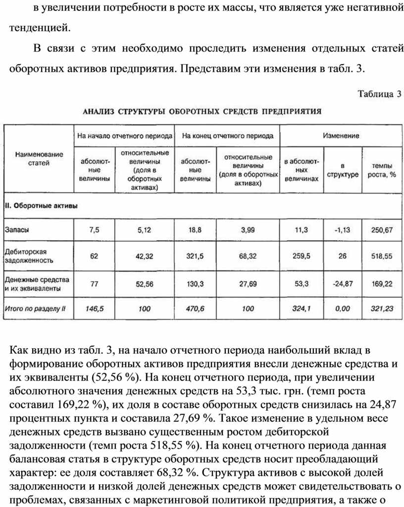 В связи с этим необходимо проследить изменения отдельных статей оборотных активов предприятия. Представим эти изменения в табл. 3.