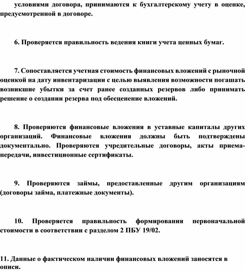 10. Проверяется правильность формирования первоначальной стоимости в соответствии с разделом 2 ПБУ 19/02.