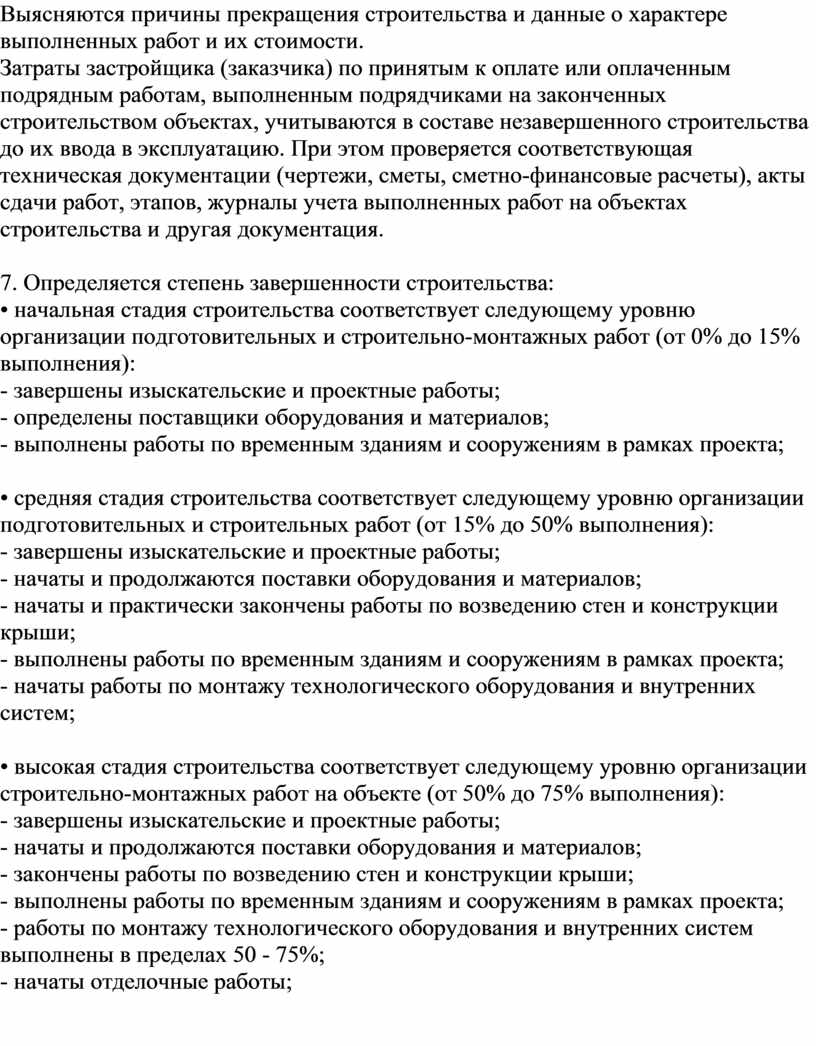 Выясняются причины прекращения строительства и данные о характере выполненных