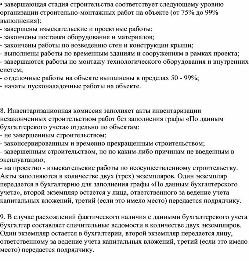 8. Инвентаризационная комиссия заполняет акты инвентаризации незаконченных