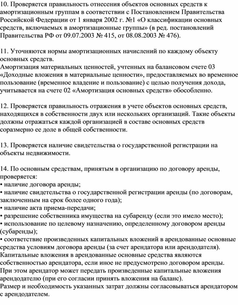 12. Проверяется правильность отражения в учете объектов основных средств,