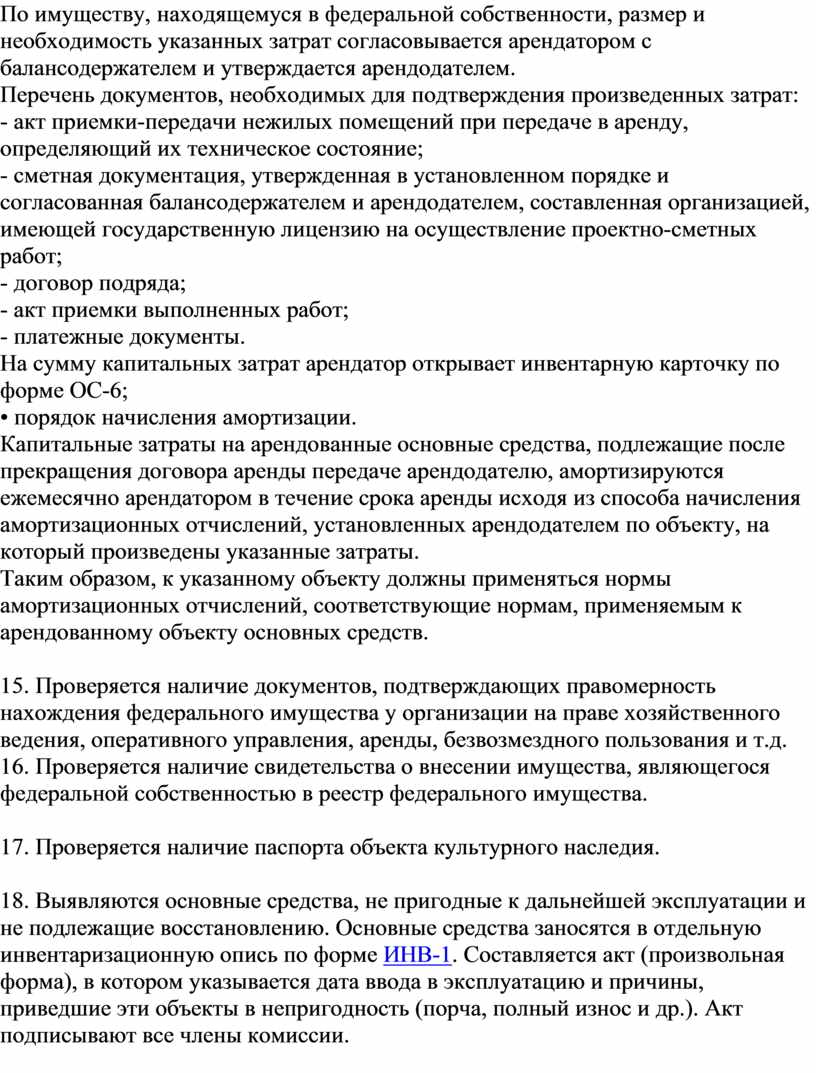 договором аренды, проверяется наличие копий инвентарных карточек, переданных