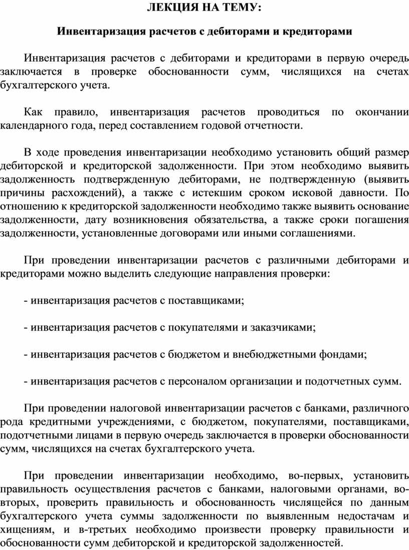 Инвентаризация расчетов с дебиторами и кредиторами в первую очередь заключается в проверке обоснованности сумм, числящихся на счетах бухгалтерского учета.