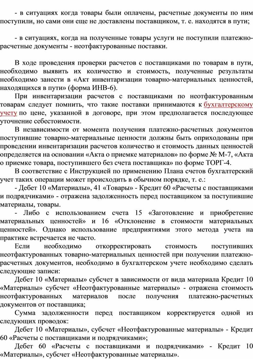 В независимости от момента получения платежно-расчетных документов поступившие товарно-материальные ценности должны быть оприходованы при проведении инвентаризации расчетов количество и стоимость данных ценностей определяется на основании «Акта о приемке материалов» по форме № М-7, «Акта о приемке товара, поступившего без счета поставщика» по форме ТОРГ-4.