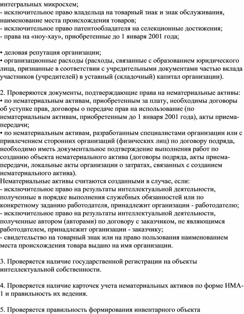 1. Проверяется состав нематериальных активов. К нематериальным активам могут