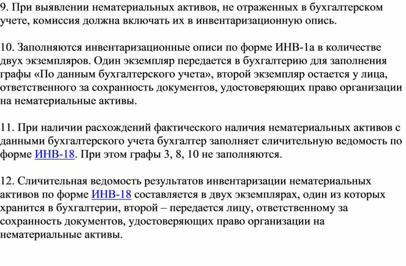 9. При выявлении нематериальных активов, не отраженных в бухгалтерском учете,