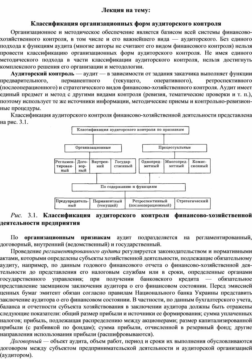 Классификация аудиторского контроля финансово-хозяйственной деятельности представлена на рис. 3.1.