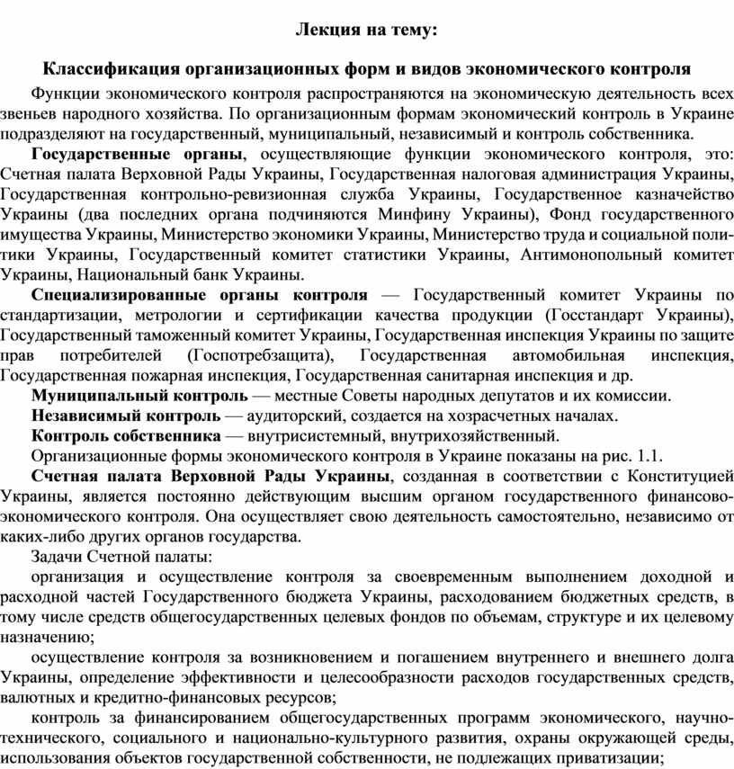 Организационные формы экономического контроля в Украине показаны на рис. 1.1.