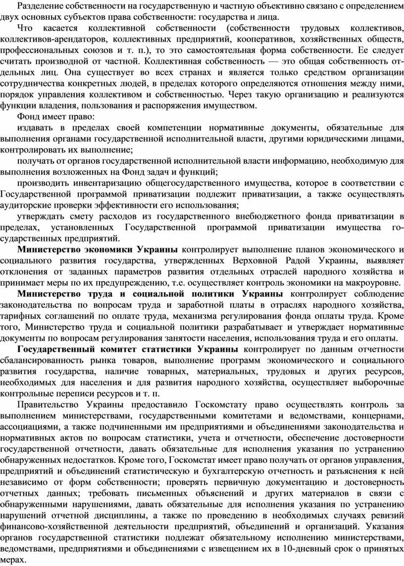 Фонд государственного имущества Украины (далее Фонд) является государственным органом, который осуществляет государственную политику в сфере приватизации государственного имущества, выступает как арендодатель имущественных комплексов, являющихся общегосударственной собственностью. Он подчинен в своей деятельности и подотчетен Верховной Раде Украины.
