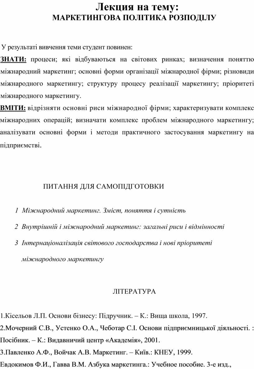 1 Міжнародний маркетинг. Зміст, поняття і сутність