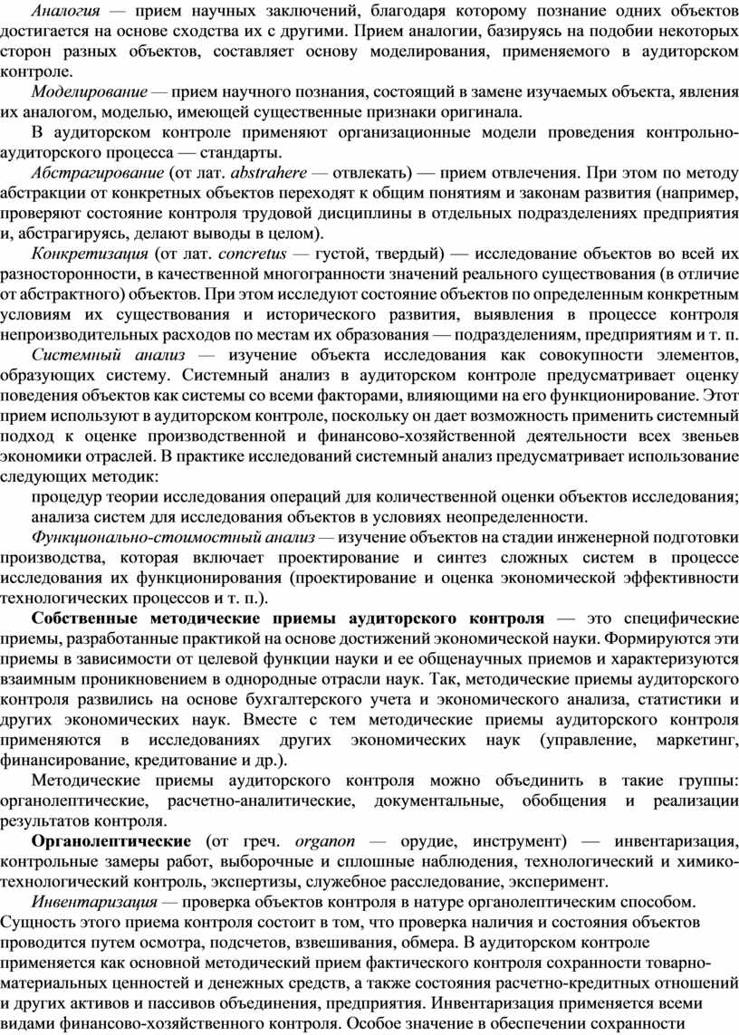 Собственные методические приемы аудиторского контроля — это специфические приемы, разработанные практикой на основе достижений экономической науки. Формируются эти приемы в зависимости от целевой функции науки и ее общенаучных приемов и характеризуются взаимным проникновением в однородные отрасли наук. Так, методические приемы аудиторского контроля развились на основе бухгалтерского учета и экономического анализа, статистики и других экономических наук. Вместе с тем методические приемы аудиторского контроля применяются в исследованиях других экономических наук (управление, маркетинг, финансирование, кредитование и др.).
