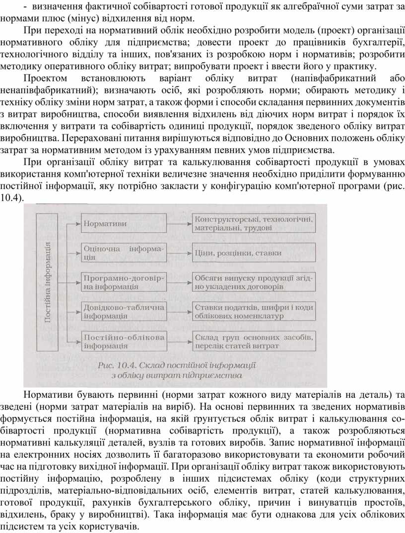 При організації обліку витрат та калькулювання собівартості продукції в умовах використання комп'ютерної техніки величезне значення необхідно приділити формуванню постійної інформації, яку потрібно закласти у конфігурацію комп'ютерної програми (рис. 10.4).