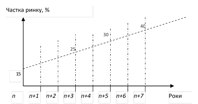 Для досягнення 40% частки ринку до п+7 року необхідно: