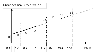 Рисунок 1.2.1 - Приклад планування обсягу реалізації за допомогою методу екстраполяції