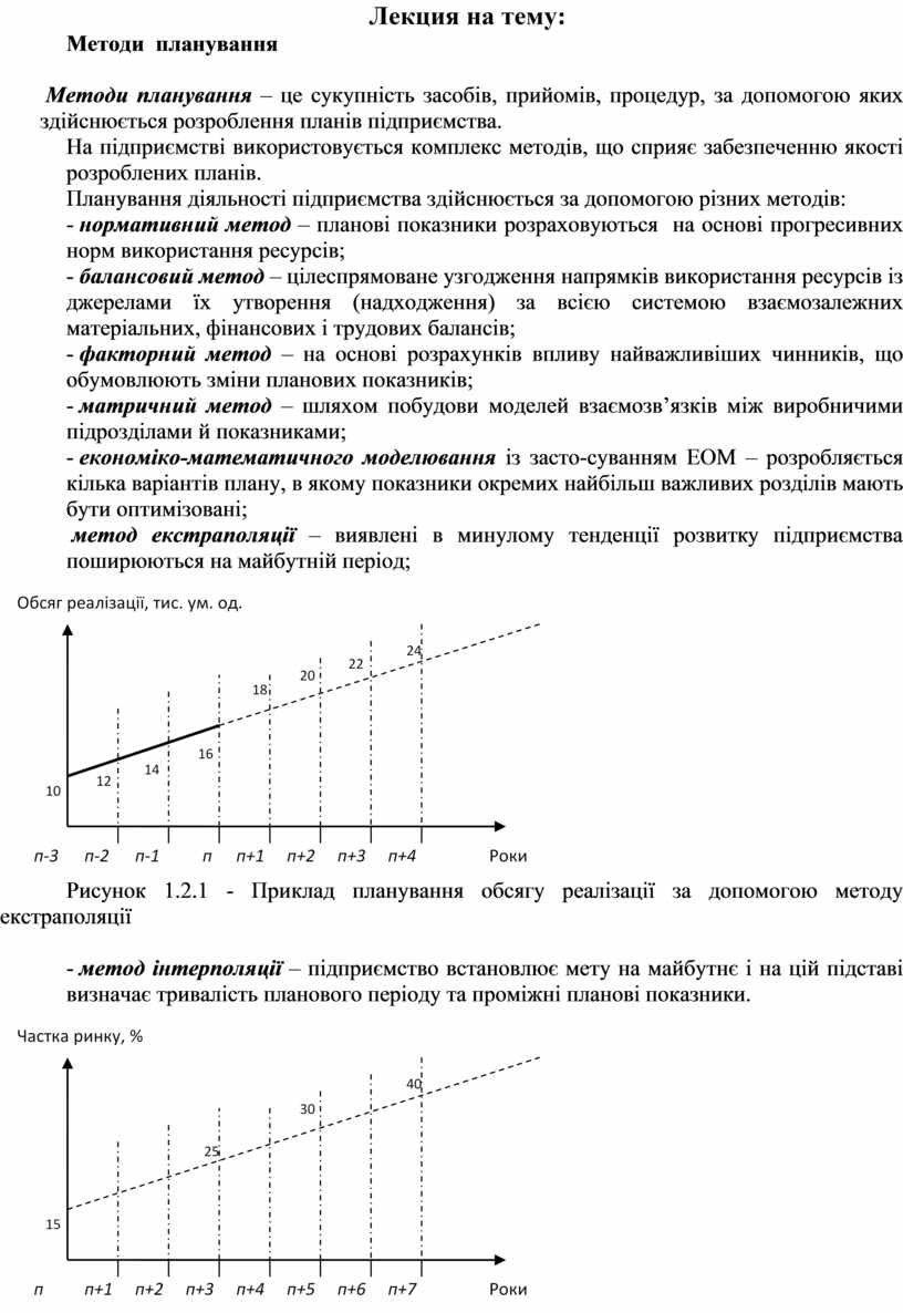 - метод інтерполяції – підприємство встановлює мету на майбутнє і на цій підставі визначає тривалість планового періоду та проміжні планові показники.