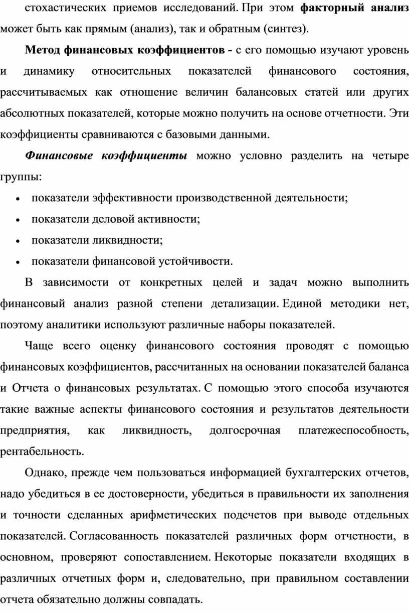 Методы анализа финансовой отчетности