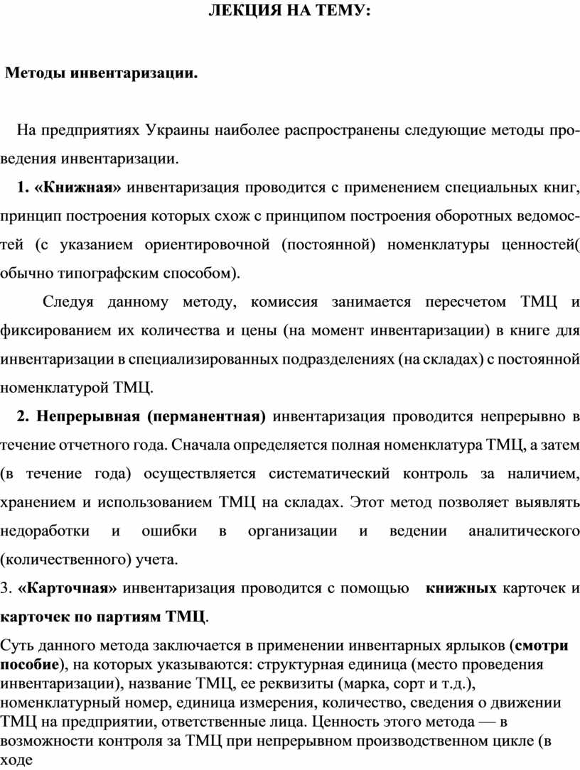 Методы инвентаризации.