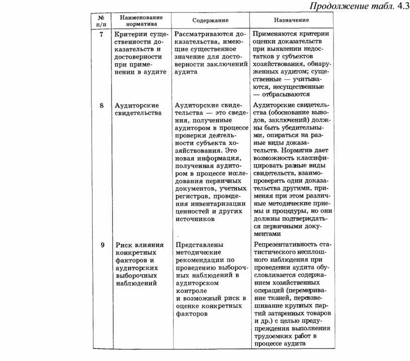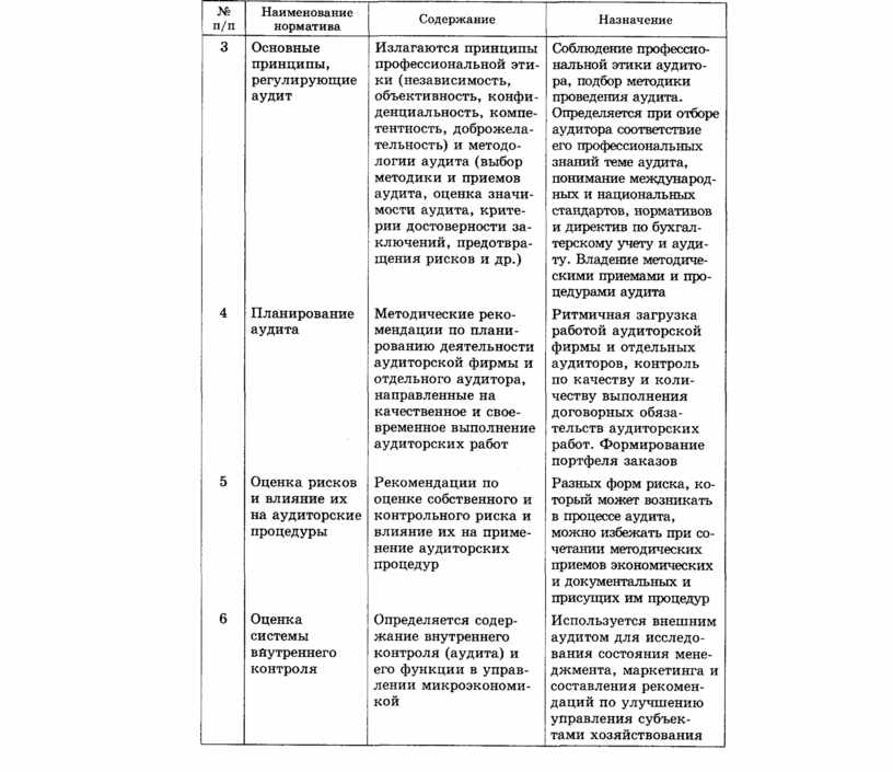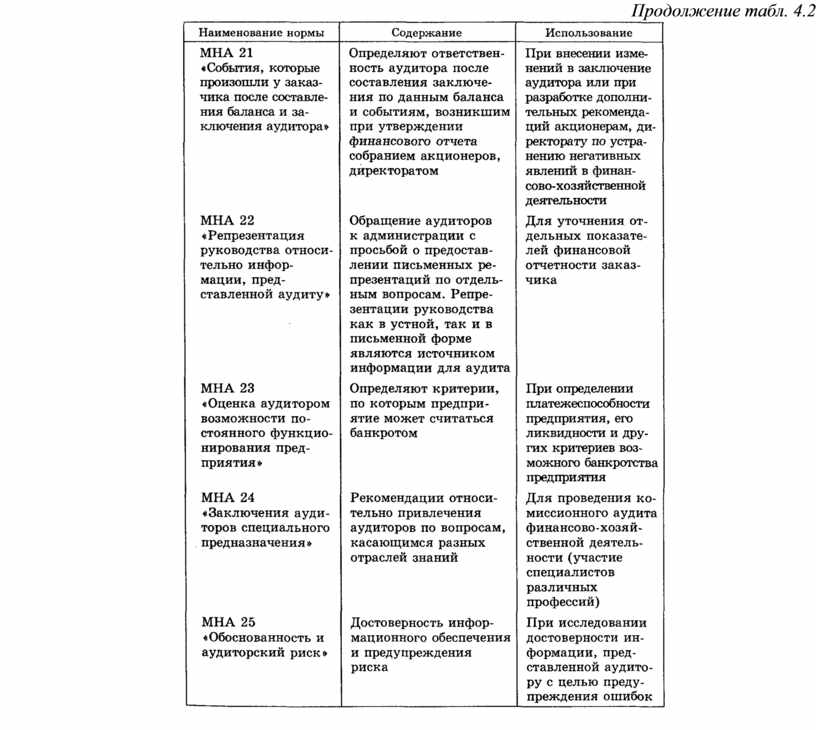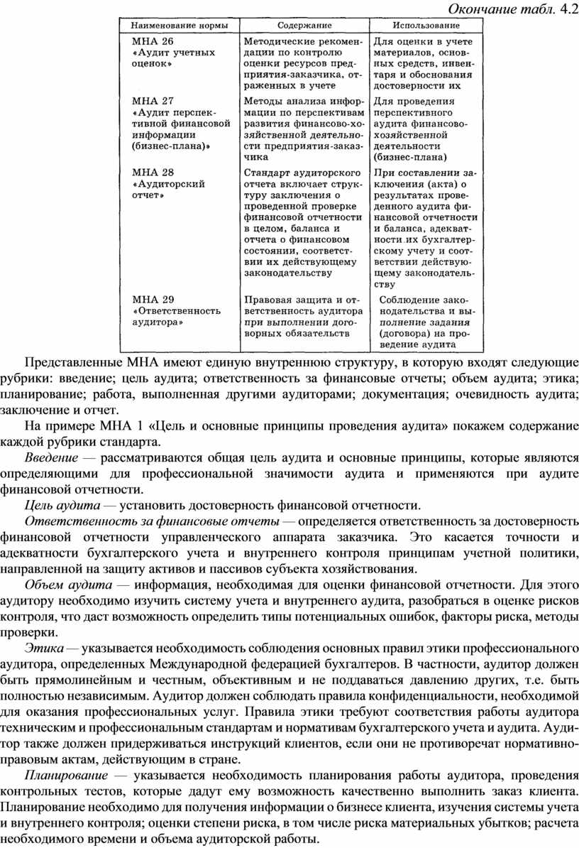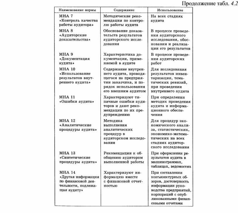 Таблица 4.2. Ориентировочный перечень международных норм аудита (МНА), их содержание и использование