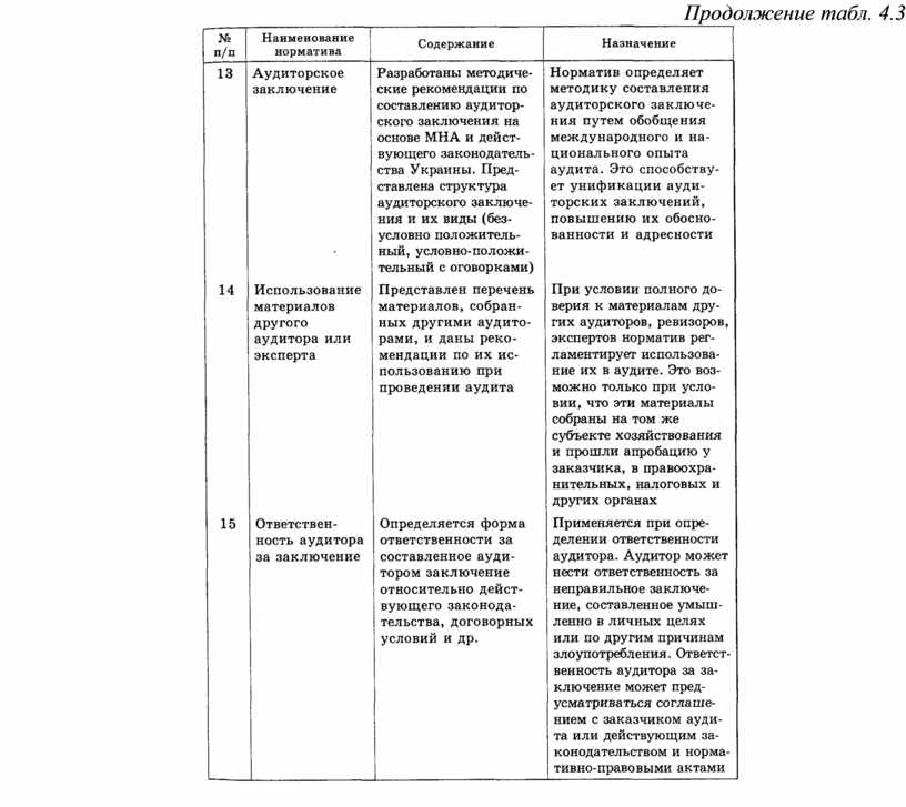 Таблица 4.3. Ориентировочный перечень национальных нормативов аудита Украины, их содержание и использование при проведении аудита