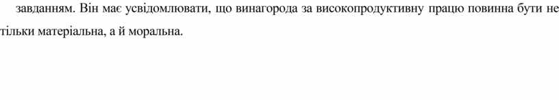 Роль менеджера у стимулюванні праці робітників важко переоцінити, оскільки удосконалення функції стимулювання для менеджерів будь-якого рівня має бути постійним, складним і невідкладним завданням. Він має усвідомлювати, що винагорода за високопродуктивну працю повинна бути не тільки матеріальна, а й моральна.