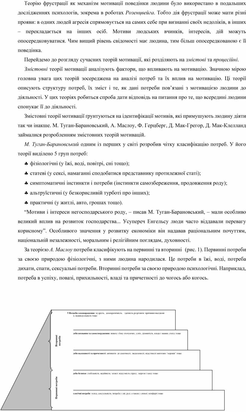§ задоволення верхньої групи потреб необов’язково призводить до послаблення їх впливу на мотивацію. Маслоу вважав, що винятком із цього правила є потреба самовиживання, яка може не послаблювати, а навіть підсилювати свій вплив на мотивацію у міру її задоволення. Практика показує, що потреба визнання і самовираження також може підсилювати вплив на мотивацію в процесі її задоволення.