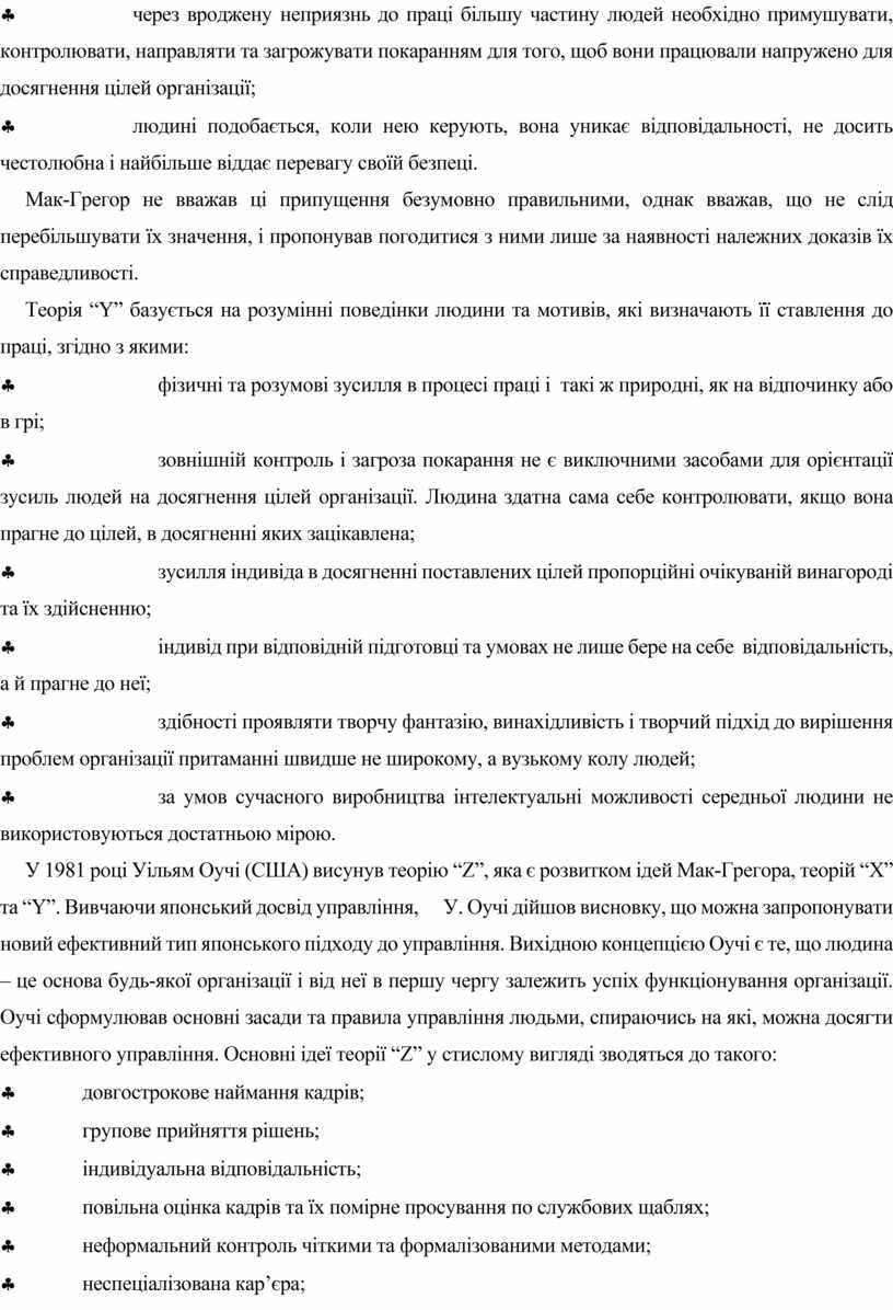 Теорія “Y” базується на розумінні поведінки людини та мотивів, які визначають її ставлення до праці, згідно з якими: