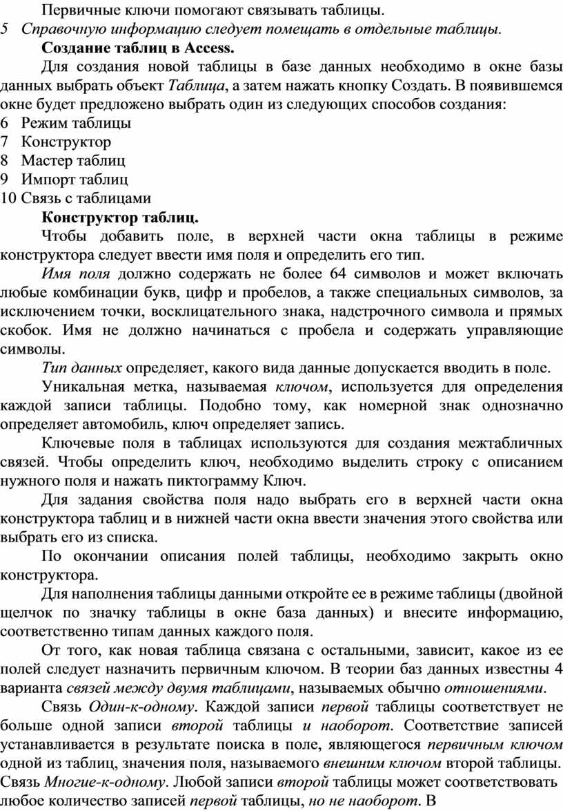 От того, как новая таблица связана с остальными, зависит, какое из ее полей следует назначить первичным ключом. В теории баз данных известны 4 варианта связей между двумя таблицами, называемых обычно отношениями.