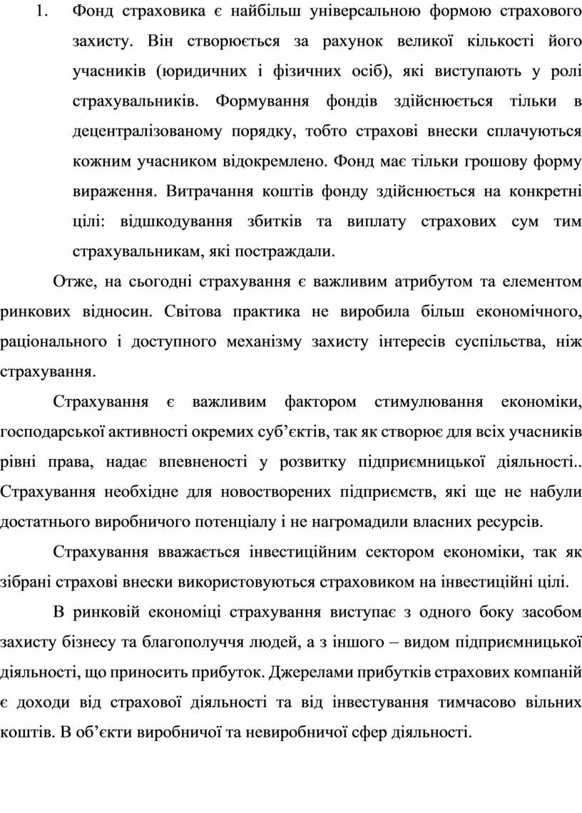 В ринковій економіці страхування виступає з одного боку засобом захисту бізнесу та благополуччя людей, а з іншого – видом підприємницької діяльності, що приносить прибуток. Джерелами прибутків страхових компаній є доходи від страхової діяльності та від інвестування тимчасово вільних коштів. В об’єкти виробничої та невиробничої сфер діяльності.