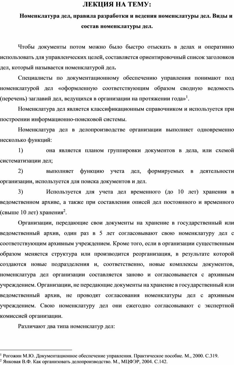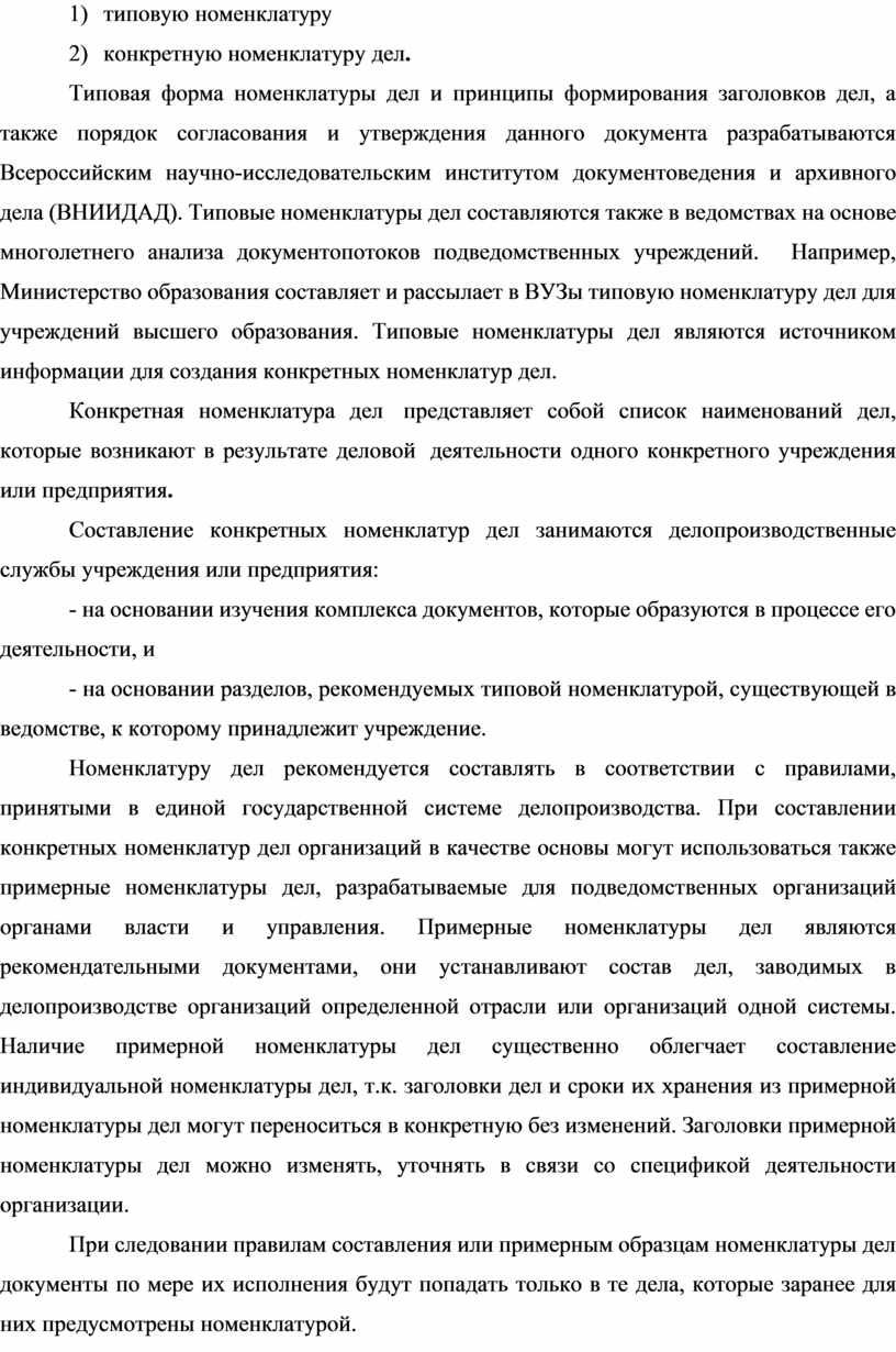 Номенклатура дел, правила разработки и ведения номенклатуры дел. Виды и состав номенклатуры дел.