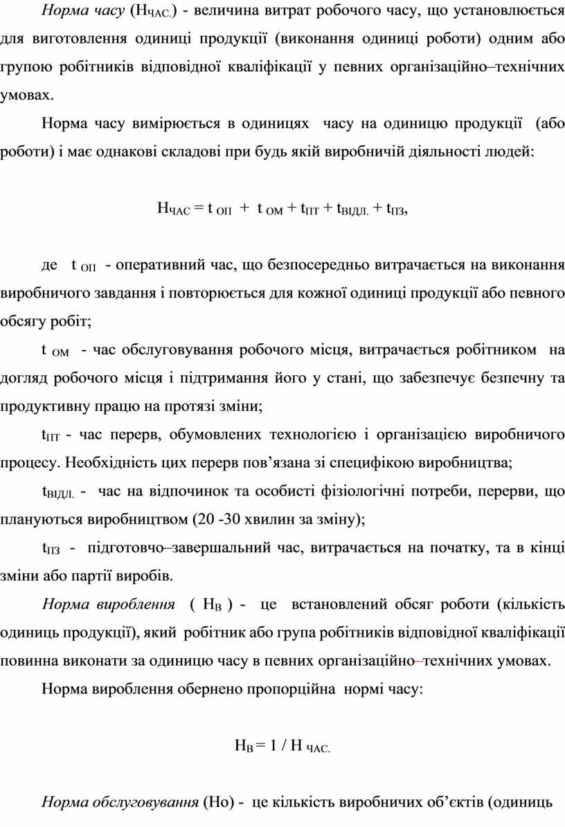 Норма часу (НЧАС.) - величина витрат робочого часу, що установлюється для виготовлення одиниці продукції (виконання одиниці роботи) одним або групою робітників відповідної кваліфікації у певних організаційно–технічних умовах.