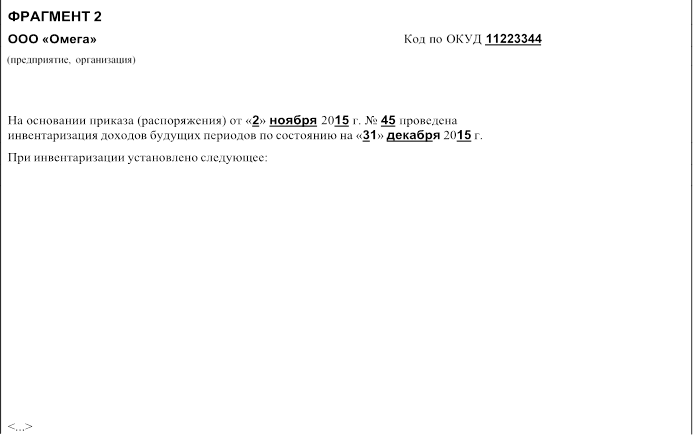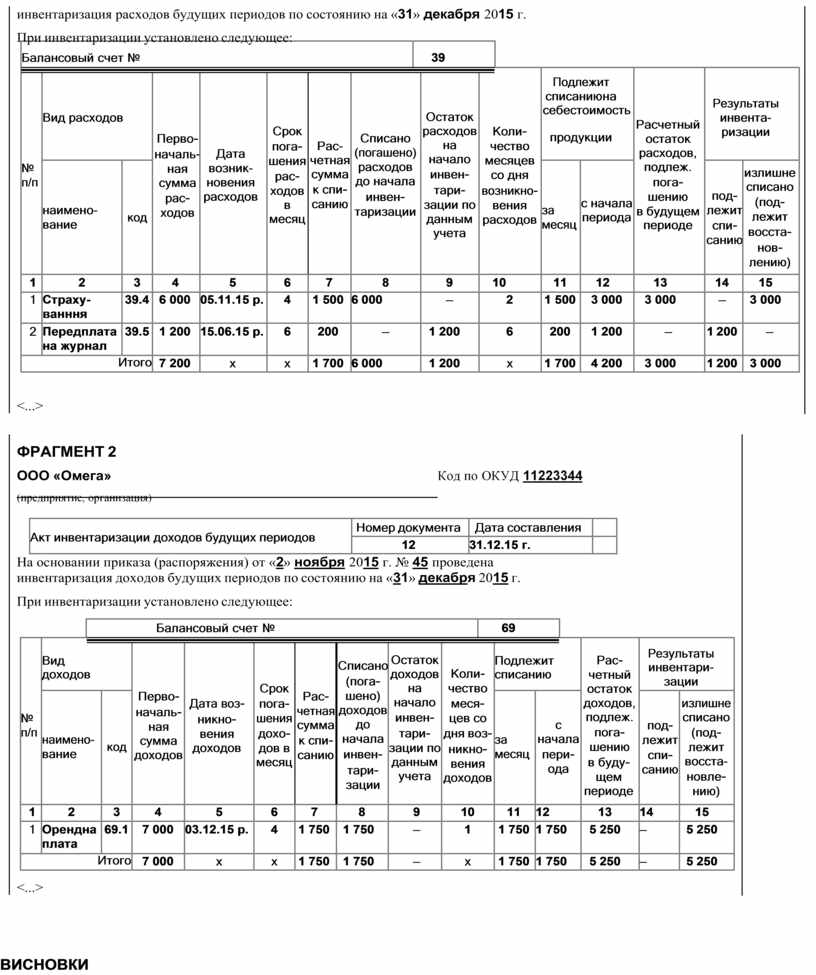Виявлені факти були відображені в акті за формою № инв-11 (див. фрагмент 1) та акті інвентаризації доходів майбутніх періодів (див. фрагмент 2). В обліку здійснено відповідні коригування.