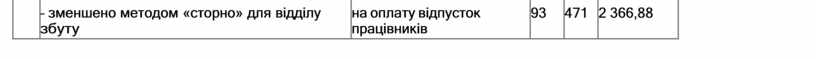 – зменшено методом «сторно» для відділу збуту |